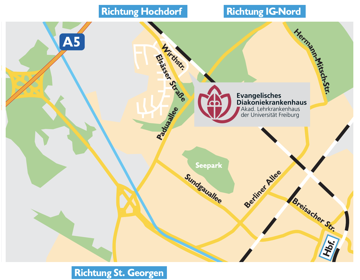 Ihre Anfahrt zum Diakoniekrankenhaus in Freiburg